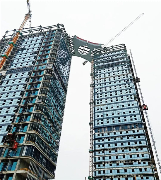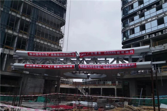 5月20日,經(jīng)過(guò)各單位12個(gè)小時(shí)的努力,由建星集團(tuán)承建的新興際華財(cái)富廣場(chǎng)項(xiàng)目屋頂雙層鋼連廊順利提升126.9米,與上部結(jié)構(gòu)預(yù)裝段精準(zhǔn)對(duì)接完成安裝。
