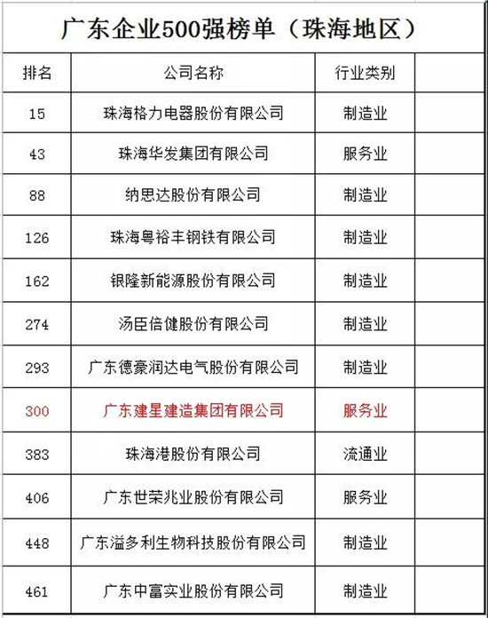 8月29日,2019廣東企業(yè)500強(qiáng)發(fā)布大會(huì)在廣州白云國際會(huì)議中心舉行。大會(huì)發(fā)布了廣東企業(yè)500強(qiáng),廣東省民營企業(yè)100強(qiáng)等榜單。廣東建星建造集團(tuán)有限公司榮登榜單,成為珠海12家上榜企業(yè)之一,也是唯一一家建筑企業(yè),連續(xù)兩年躋身廣東企業(yè)500強(qiáng)、民營企業(yè)100強(qiáng)。