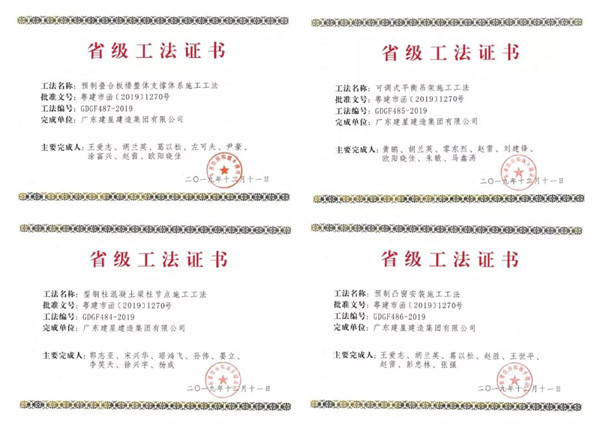 科學(xué)技術(shù)獎(jiǎng)現(xiàn)場(chǎng)照片2019年11月,廣東省住房和城鄉(xiāng)建設(shè)廳組織專家對(duì)2019年度全省建筑業(yè)企業(yè)申報(bào)的工法進(jìn)行了評(píng)審,我司獲得了4項(xiàng)工法。建星集團(tuán)將高度重視工程建設(shè)工法管理工作,認(rèn)真總結(jié)施工經(jīng)驗(yàn),積極創(chuàng)新技術(shù)管理,加強(qiáng)工法的開發(fā)和應(yīng)用,增強(qiáng)企業(yè)的核心競(jìng)爭(zhēng)力和技術(shù)積累,不斷提高建筑技術(shù)和工程質(zhì)量水平,促進(jìn)建筑業(yè)轉(zhuǎn)型升級(jí),推動(dòng)建筑業(yè)高質(zhì)量發(fā)展。