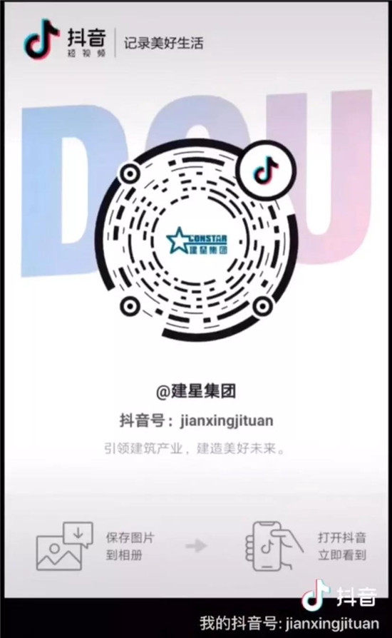 建星集團(tuán)官方抖音號正式上線營業(yè)啦!集團(tuán)新媒體矩陣再添一員,小伙伴們,快快關(guān)注它!保存下圖,進(jìn)入抖音APP掃描圖中二維碼