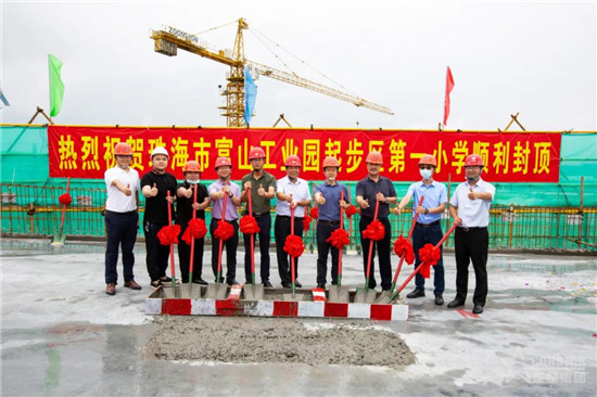 伴隨著最后一方混凝土澆筑到位,5月18日,建星集團(tuán)旗下全資子公司中易建建設(shè)承建的富山工業(yè)園起步區(qū)第一小學(xué)項(xiàng)目,歷經(jīng)45天“奮戰(zhàn)”順利封頂,以高標(biāo)準(zhǔn)、高質(zhì)量完成任務(wù),見證了“建星速度”。富山工業(yè)園黨委書記、管委會主任陳家平,珠海華金開發(fā)建設(shè)有限公司董事長王輝,建星集團(tuán)副總裁兼項(xiàng)目管理中心總經(jīng)理黃鵬共同出席封頂儀式。