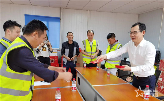 2月3-4日,集團總裁王愛志帶隊趕赴項目一線,為就地過年工人送去新春慰問和祝福。在慰問座談會上,他強調(diào)黨員要充分發(fā)揮先鋒模范作用,項目設(shè)立黨員先鋒崗,樹立防疫搶工標桿形象;項目部在做好防疫措施的同時,豐富員工生活,確保就地過年工人度過一個暖心的春節(jié)。
