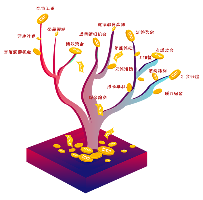 為價(jià)值、為貢獻(xiàn)付薪以崗位價(jià)值、個(gè)人能力與業(yè)績貢獻(xiàn)為基礎(chǔ)的薪酬管理體系;崗位工資、績效獎(jiǎng)金、年終獎(jiǎng)金、專項(xiàng)獎(jiǎng)金、年度調(diào)薪機(jī)會(huì)、項(xiàng)目跟投機(jī)會(huì)等等;