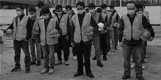 4月4日10:00,建星集團全體項目部組織降半旗、默哀三分鐘,深切哀悼為抗擊新冠肺炎疫情斗爭犧牲烈士和逝世同胞。