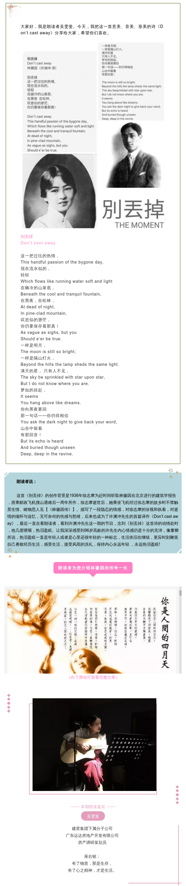 “朗讀月”第一期:英語美文朗讀《別丟掉》