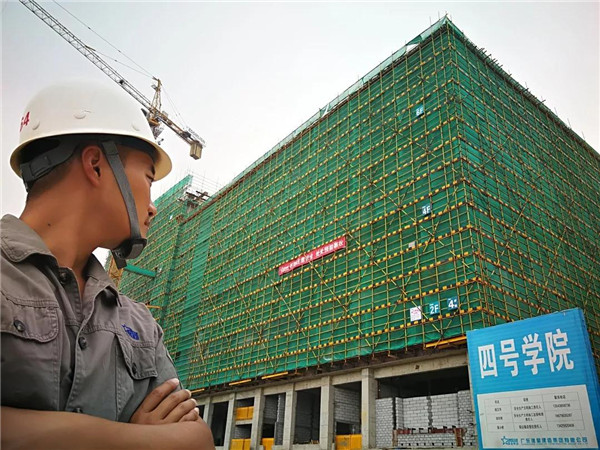 珠海的天氣高溫多雨,潮濕漫長(zhǎng)。從四季分明的城市來(lái)到這里,起初我特別不適應(yīng)。每天的戶外一線施工作業(yè)對(duì)我而言如同蒸了整整一天的桑拿,毒辣的太陽(yáng)、汗?jié)竦墓ひ掠绕渥屓四臒┰辍H欢呖兆鳂I(yè)注意力必須高度集中,容不得一點(diǎn)馬虎和疏漏。當(dāng)時(shí)心里就一個(gè)想法,無(wú)論遇到什么困難,必須堅(jiān)持下去,為項(xiàng)目高質(zhì)量完成保駕護(hù)航。整個(gè)漫長(zhǎng)的夏天從開(kāi)始的咬牙堅(jiān)持到逐漸的適應(yīng),四號(hào)學(xué)院就像一個(gè)我親手養(yǎng)育的孩子慢慢長(zhǎng)大成人。